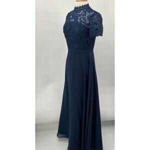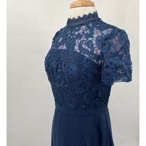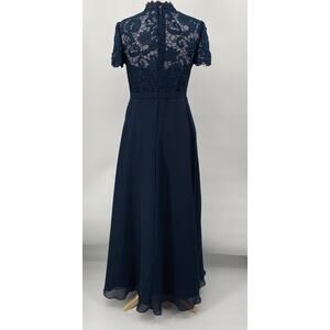 JJs House Gown Embroidered Crochet Lace Bodice Fit & Flare Chiffon Navy Blue
