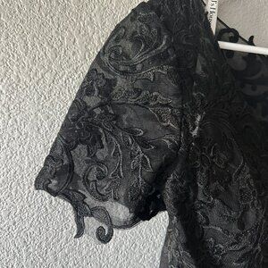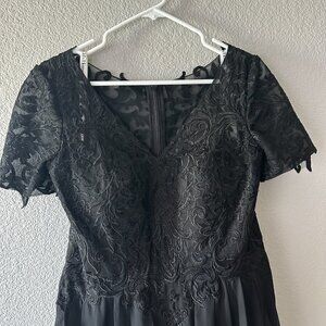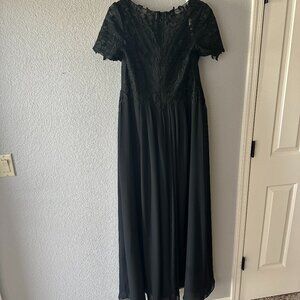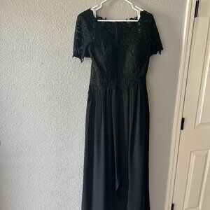 Worn once for son's black tie formal wedding. Dress is very comfortable and flattering! Sophisticated A-line dress with lace v-neck bodice and a breezy chiffon skirt that cascades naturally to the floor.