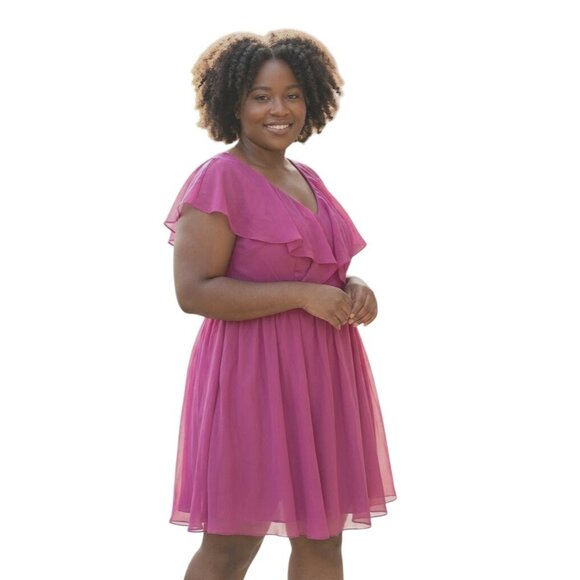 JJ’s House Orchid Ruffle V-Neck Mini Dress Plus 18-20 New Bridesmaid Formal Black Tie