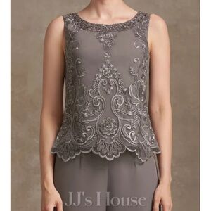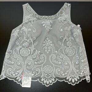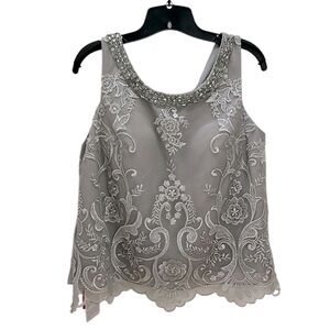JJ’s House Silver Embroidered Embellished Sleeveless V-Back Top Special Event