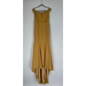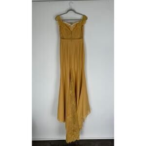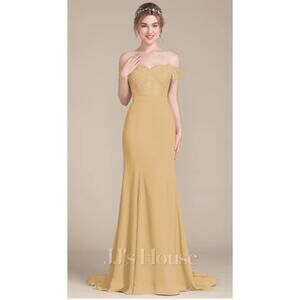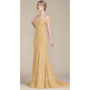 JJs House Trumpet Off the Shoulder Lace Chiffon Bridesmaid Dress Sequin 6 Gold