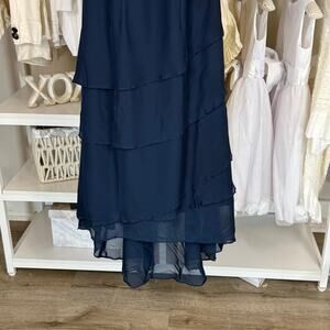 JJ‘s house sz. XS navy blue mother of the bride dress asymmetrical tiered with sheer jacket jacket #4018