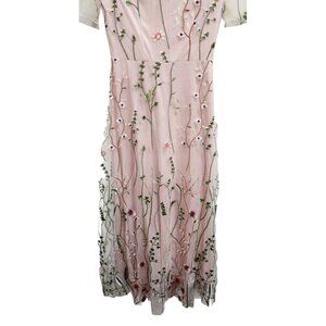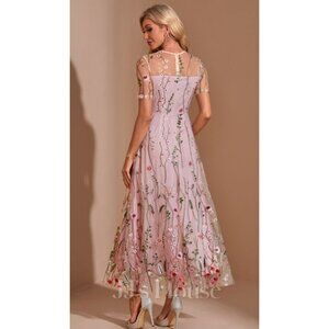 JJ'sHouse Elegant Pink Embroidered Maxi Dress Women’s Formal Gown Floral S