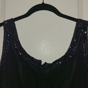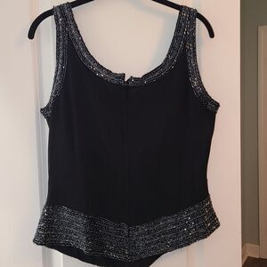 JK ARA New York black tank top blouse in a size 12. Has beading around neckline, armholes, and hem. Center back zipper. Excellent condition.