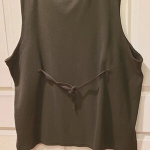Change up that boring outfit with the addition of this easy going tunic length vest or wear that too short, too tight blouse under this versatile wardrobe addition. This is my personal item and washes beautifuly and fits like a 3x. It retains its dark sagey green color and has no apparent wear that I can see. Look for it's burgundy sister also for sale in my closet! hate to see them go, but I've lost weight and they don't work for me now.
