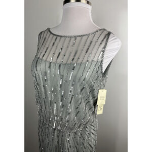 JKARA Beaded Sequin Mesh Evening Dress Plus Size 16 Mother Of Bride Formal NWT
