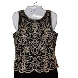 JKARA Gold Embellished Bodice A-Line Beaded Chiffon Long Dress Black Women's 8