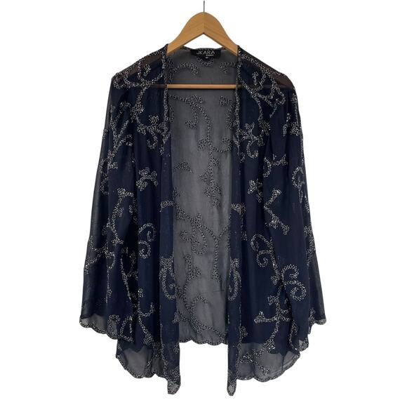 JKARA Women Blue Sheer Beaded Topper Size 16 Party Mother Of The Bride NYE