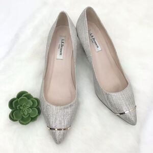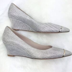 J.K. Bennett Alyssa Silver Metallic Bamboo and Leather Wedge