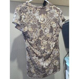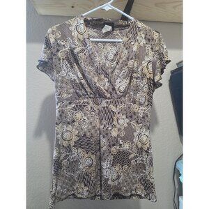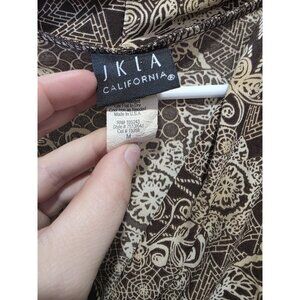 JKLA California Brown Patterned Y2K Blouse Shirt Women's Medium Short Sleeve