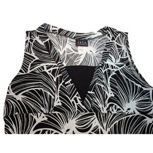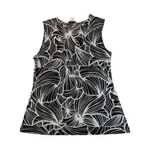 JKLA California Sleeveless Blouse V-Neck Tropical Leaf Print Black White Medium