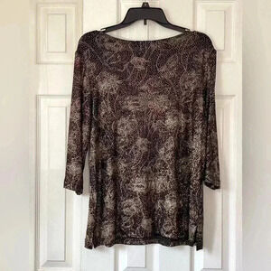JKLA California Womens Blouse Large Brown Metallic Embellishment Boho 3/4sleeve Blouse Top, side hem split about 3”