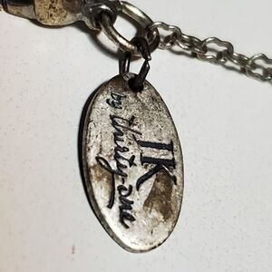 JK by thirty-one silver colored letter R necklace.