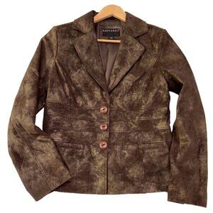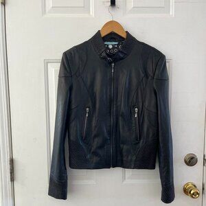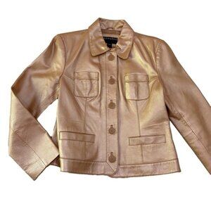 JKT NYC Piper Patina Leather Jacket Au Lait Tan Cropped Unlined Zippers Size XS