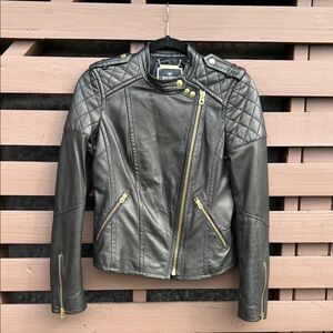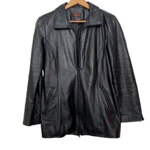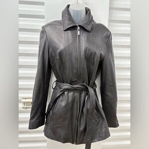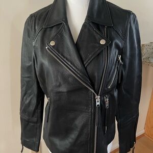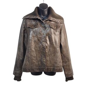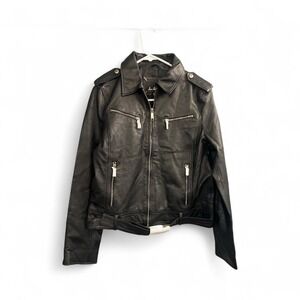 Elevate your style with this chic tan leather jacket. Perfect for any occasion, this jacket offers both comfort and elegance.