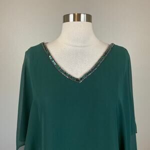 JKara Women's Cocktail Dress Size 6 Green Sequined Asymmetric Caped Mini Sheath
