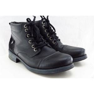 J.Koda Sz 42 M Black Round Toe Ankle Boots Leather Men
