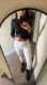 J&L Atelier women's small petite (S/P) slim-leg white tan trousers, made from a blend of 88% nylon and 12% spandex.