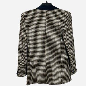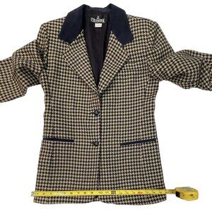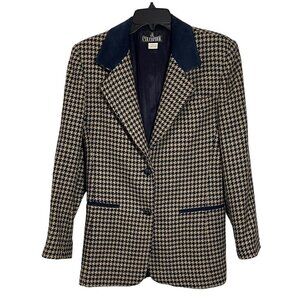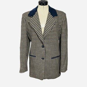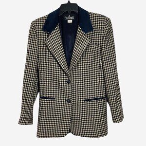 JL COLEBROOK Mohair Wool Houndstooth Blazer Women Small Navy Tan Career Business