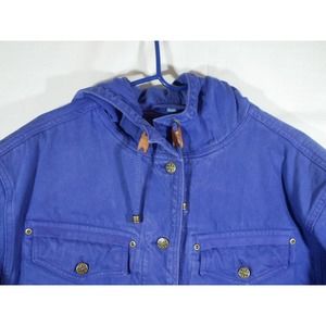 J.L. Colebrook Purple Hooded Denim Jacket Button Front Medium