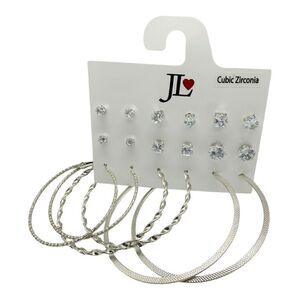 JL❤️ Cubic Zirconia Earrings and Hoop Earrings Silver Color Style 2750 Class 3135