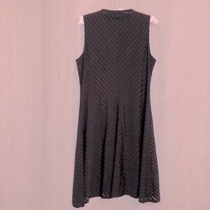 JL M Solid Black Diagonal Stripes Sleeveless Choker Front Keyhole Flare Dress