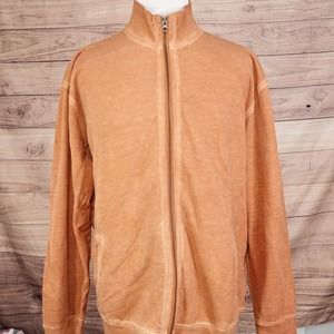 JL POWELL ORANGE FULL ZIP MOCK NECK COTTON SWEATER MENS SIZE 2XL XXL