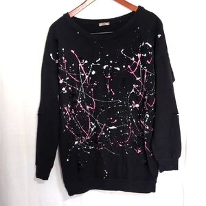 J&L Paris Black Distressed Splatter Paint Crewneck Sweatshirt Size Medium