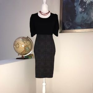 Gray/black/red plaid skirt with elastic waist. Skirt is form fitting and 24” in length. Waist is 33”/38” stretched. 55% polyester 41% rayon 4% spandex. In excellent condition. No rips, tears, stains or odors.