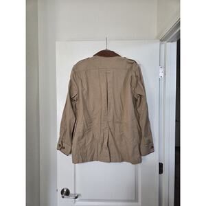 J.L. Powell Khaki Safari Cargo Leather Collar Cotton Tan Jacket, Men's Medium