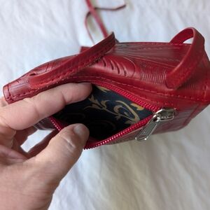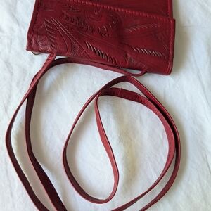 Excellent condition JL Saldivar tooled red leather crossbody bag. Rare red color is perfect for fall!