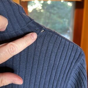 Small hole at neck seam on back right. Can easily be sewn up. (See pic)