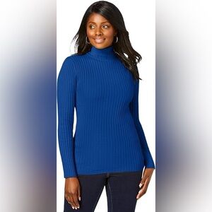 JL Studio Jessica London Navy Blue Ribbed 100% Cotton Turtleneck Sweater Size 1X