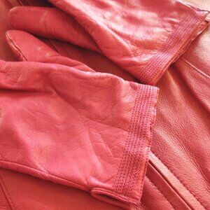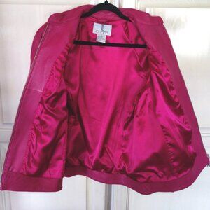 JL Studio Vintage Full Leather Moto Jacket in Hot Pink w/Matching Leather Gloves, Size 14W (XL), Total Retail $350. Gloves are slightly brighter in color.