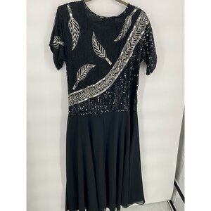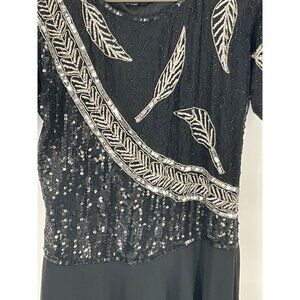 J.L.B. Womens Black Pure Silk Sequin & Beaded Dress With Leaf Pattern Large