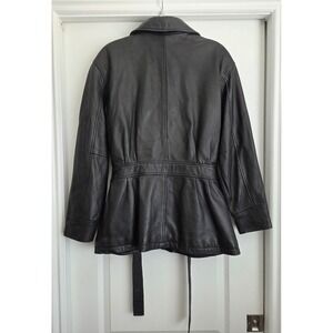 JLC Black Leather Mid Length Jacket Belted Zip Up Sz M Vintage Biker Edgy