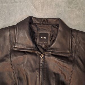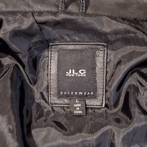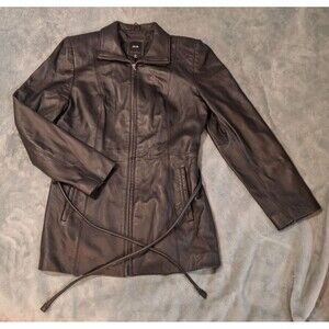 JLC NEW YORK Outerwear Women L Black Leather Jacket w/Belt Zip EUC