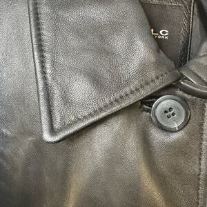 JLC New York Black Leather Classic City Grunge Retro Long Button Up Jacket XL