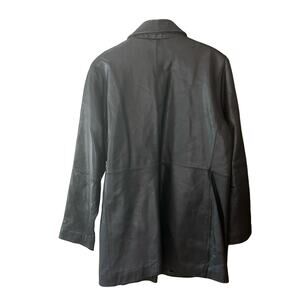 JLC New York Black Leather Classic City Grunge Retro Long Button Up Jacket XL