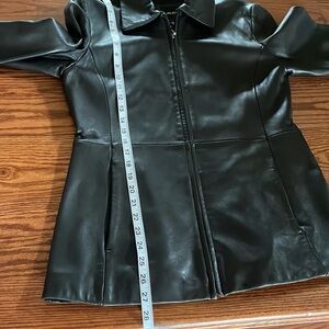 JLC New York GENUINE LEATHER women’s blazer jacket black zip front pockets Small