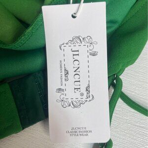 This elegant green maxi dress from JLCNCUE features a stylish high slit and adjustable straps. It's crafted with care, making it suitable for stylish occasions.