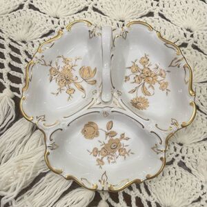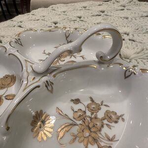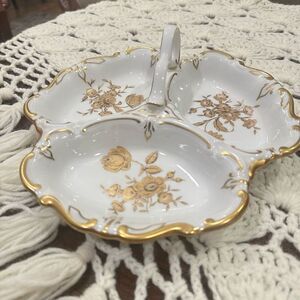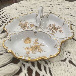 JLMenau Graf Von Henneberg Germany Gold Trim Porcelain Section Dish W/ Handle
