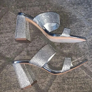 JLO Brita Rhinestones Silver Sandals Size 7M