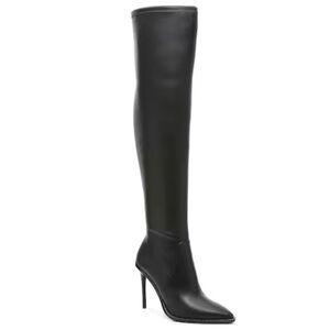 New never worn! Poised on a pump silhouette, the Vitala from JLO JENNIFER LOPEZ is taken over the top by a OTK boot shaft that's slim and form fitting. Rhinestone studs outline the midsole trim, a striking detail that's hidden until you're up close and personal. Box is a little ripped. Pet and smoke free home