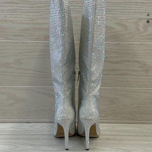 White Rhinestone Knee High Boots... New in Box 9 1/2