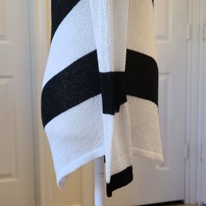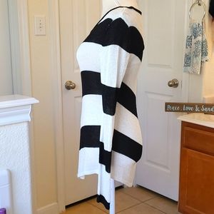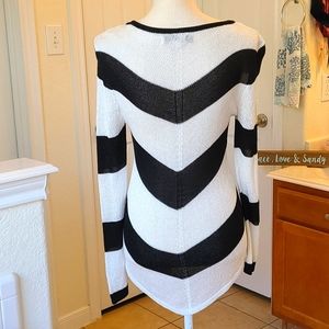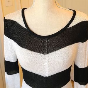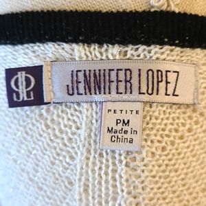 This is a very nice elegant long sleeved shear black-and-white striped J-LO Petite "M" shirt. Weaved within the white is a gorgeous silver that makes the shirt pop with bling 💎! I'm a med and it fits perfectly🥰!
