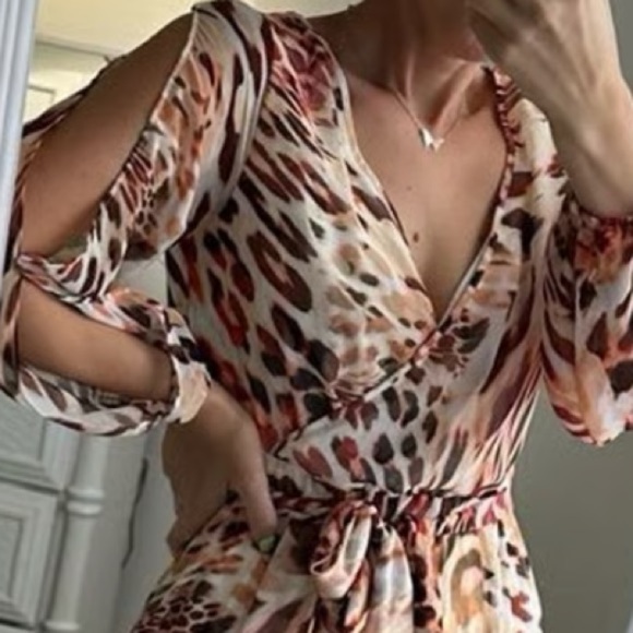 JLO long dress with slits and leopard print, Sz M Leopard Print Maxi Dress