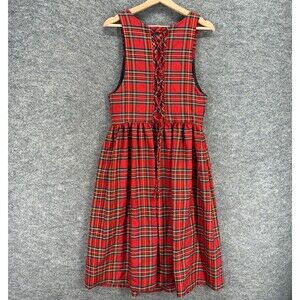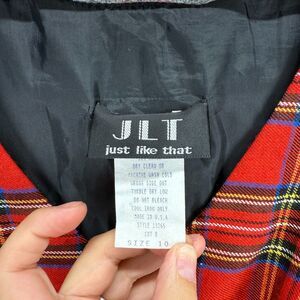 JLT Dress Women 10 Red Plaid Sheath Midi V-Neck Sleeveless Button V-Neck Rayon
