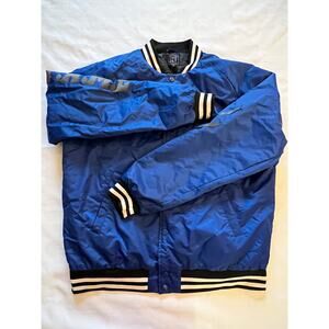 JLT Luxury Varsity Bomber Windbreaker Jacket Men 2XL Snap Nylon Lined Blue Black
