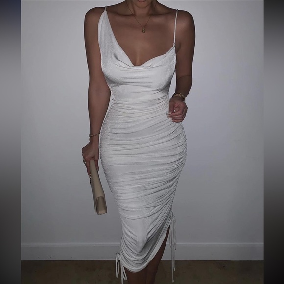 Worn once, so flattering and pretty!! Also adjustable to make midi/maxi. Size small but can fit a medium as well!